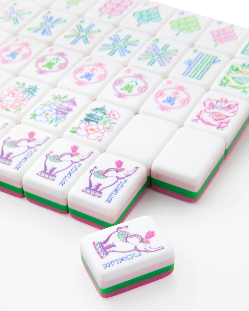 Radiant, playful, and full of personality, the Amara Tiles are designed to brighten every table they touch. Featuring a lively mix of pinks paired with a vibrant pop of green, this spirited palette feels both fresh and effortlessly fun. Bold yet beautifully balanced, the Amara Tiles bring an instant dose of joy to your game—perfect for the player who loves a little flair with every throw. Energetic, elegant, and always eye-catching, they turn every round into a celebration.